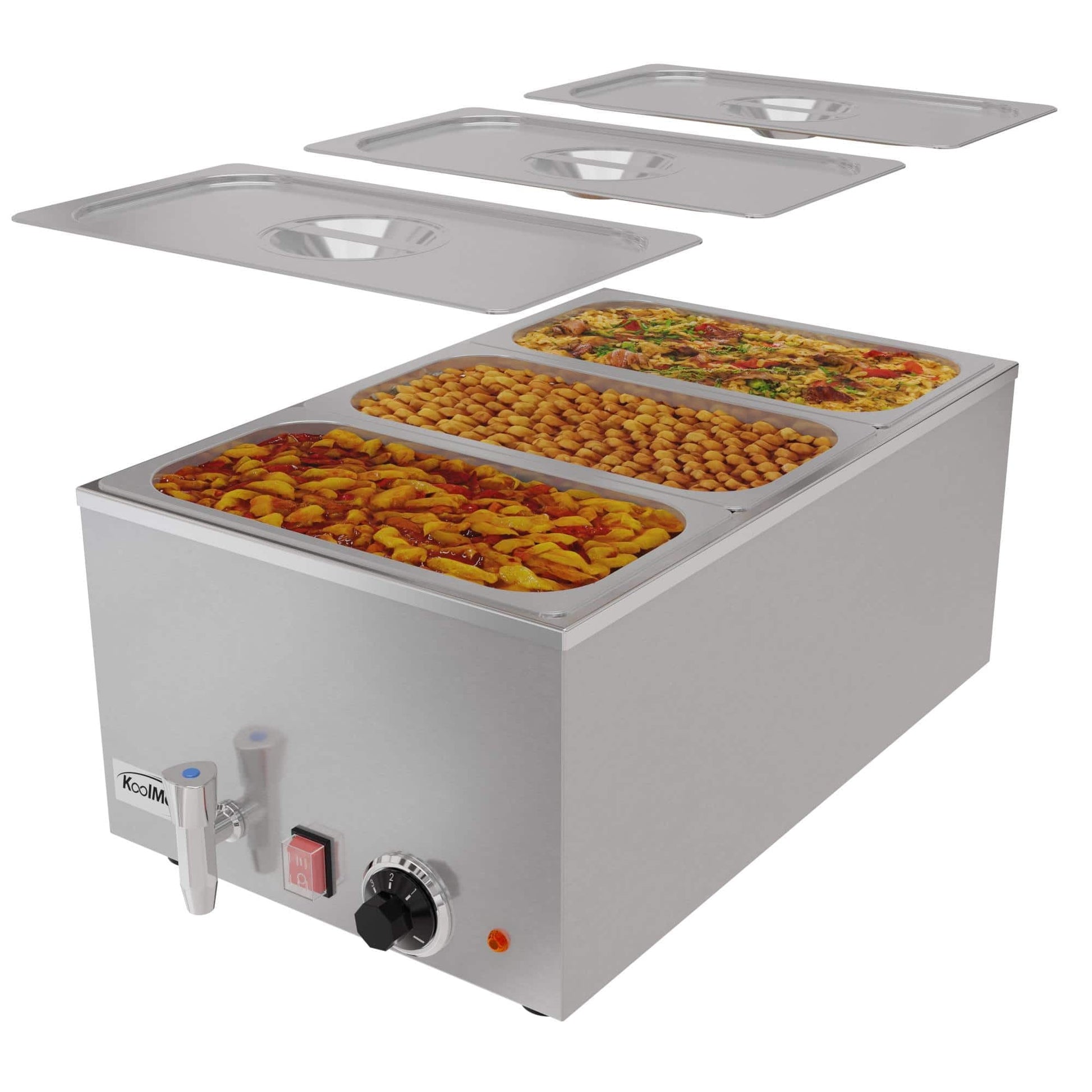 Keep Food Fresh, Delicious, and Ready to Eat with a Commercial Bain Marie Warmer from KoolMore When it comes to hosting parties, events, or gatherings where food is a focus you want to make sure your food stays at just the right temperature to keep guests happy. And if you're a professional food service like a caterer, hotel staff, or commercial foodservice operation you want an easy way to make food accessible while also keeping it fresh and delicious. KoolMore Bain Marie Food Warmer Steam Tables give you just the right level of convenience and support when it comes to maintain foods, so you can serve-up guests or let them serve themselves while ensuring the food tastes just right.