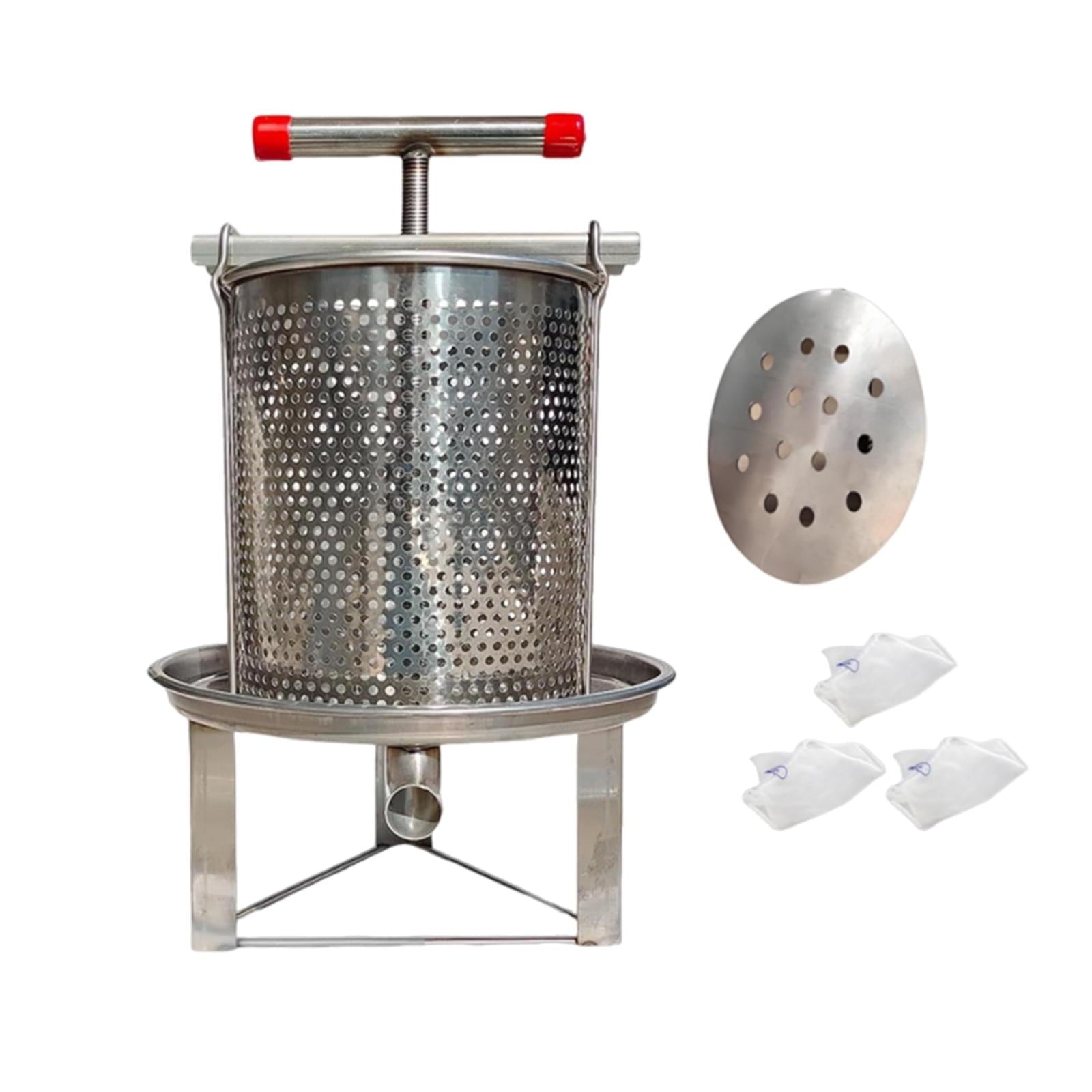 LOVIVER Honey Extractor Crusher ,Homemade ,Stable Base Manual ,Practical Fruit Press Making ,for Grape Honeycomb ,Olive Oil 3 filtration bags.1 Manual Press Barrel, Filtration Mesh and drain panVegetable filling is equipped with T shaped rotatable handle for easy , making it easy to store and handle large amounts of foodThis Manual Press Barrel is not only ideal for extracting honey but also suitable for pressing fruits and vegetables to make or juice, making it a companion for households, restaurants, farms, and food factories alikeHoney Press Extractor with a large capacity and a unique honeycomb wall structure, allows for 360 degree honey production, significantly enhancing output efficiencyConstructed with stainless steel that reinforce as steel beams, this Honey presser is sturdy with an extended lifespan. The base is stabilized by three support legs made from thicker round steel triangles, ensuring greater stability during useManual Press Barrel Vegetable Filling . 304 Stainless Steel Manual Juicer Press Barrel. Household Manual Juice Maker Tool. Honey Press Extractor with Handle Kitchen Home. Juice Extractor Juice Cheese Vegetables Honey.