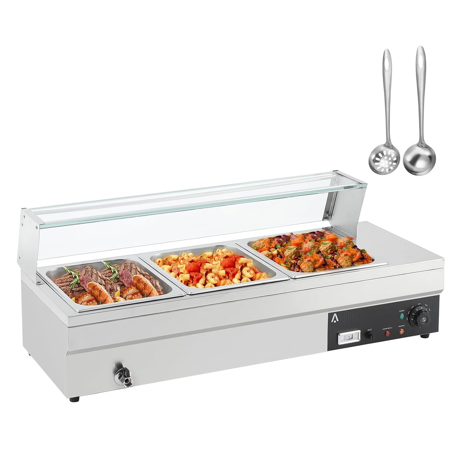 M optimized 36QT Commercial Food Warmer 3-Pan, 12QT*3 Capacity, 1500W Power, Tempered Glass Cover, 6" Deep Pans, and Adjustable Temp Control 86-185°F