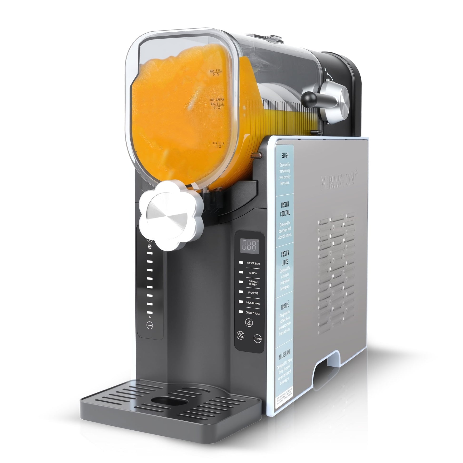 - 【6 Preset Programs】The MIRASTON Slushie Machine offers 6 preset programs: Ice Cream, Slush, Spiked Slush, Frappé, Milk Shake, Chilled Juice, to create a variety of smooth, delicious frozen drinks with perfect texture .