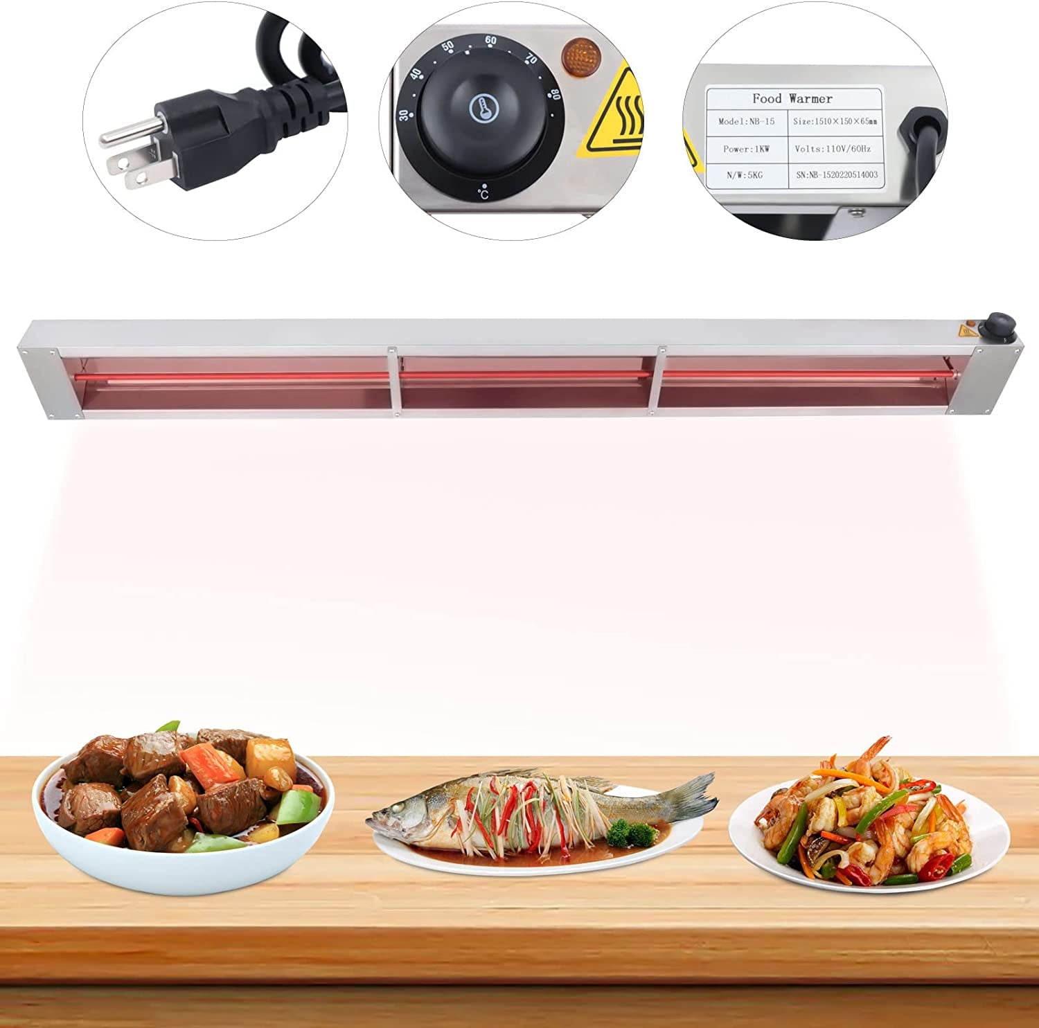 Miumaeov 110V Food Soup Warmer, 60''Table Food Grade Stainelss Steel Countertop Commercial Canteen Buffet Server Overhead Heater, 1000W Electric Countertop Food Warmer with Temperature Control