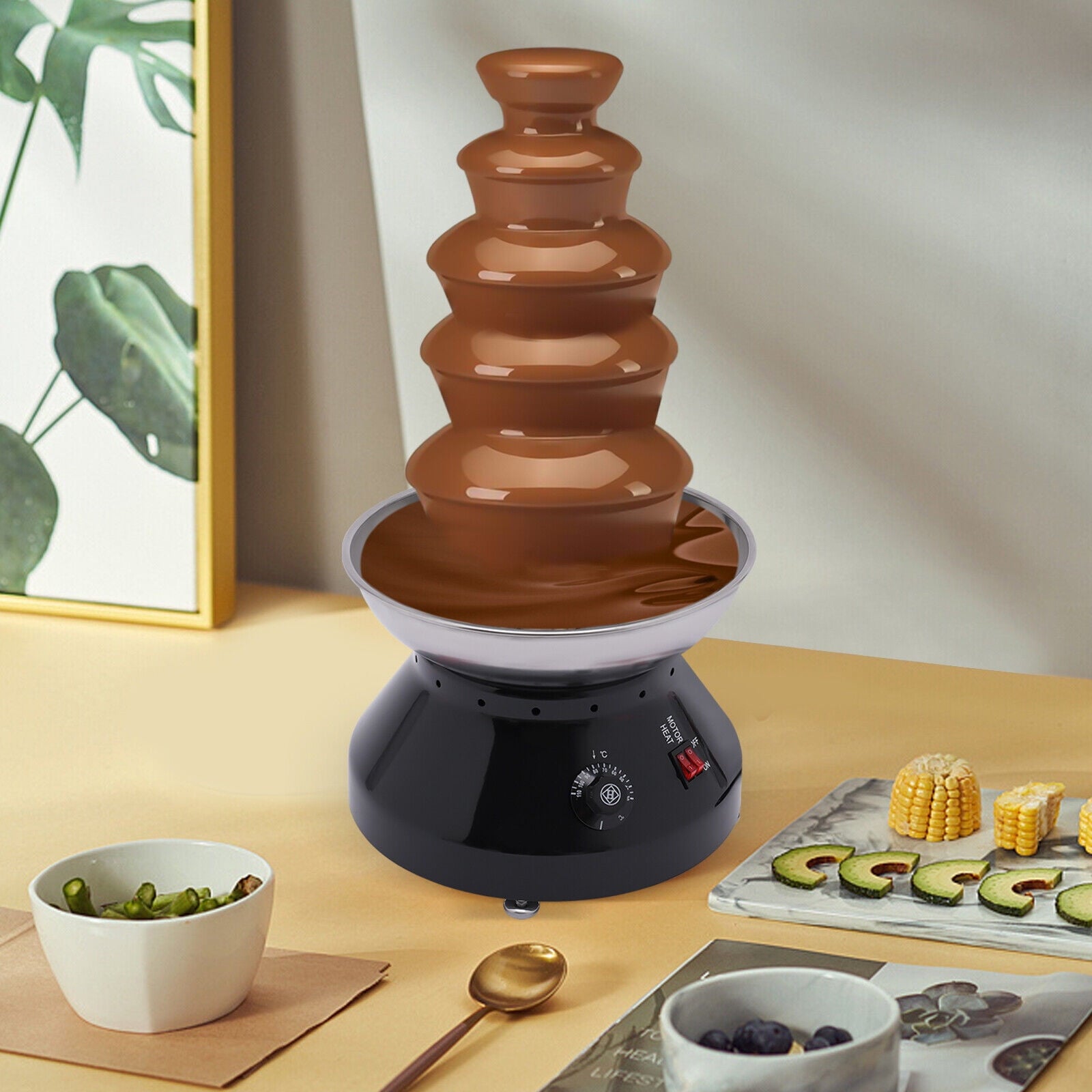 Miumaeov Electric Chocolate Fondue Fountain 5 Tier Chocolate Melting Heating Machine Stainless Steel 110V