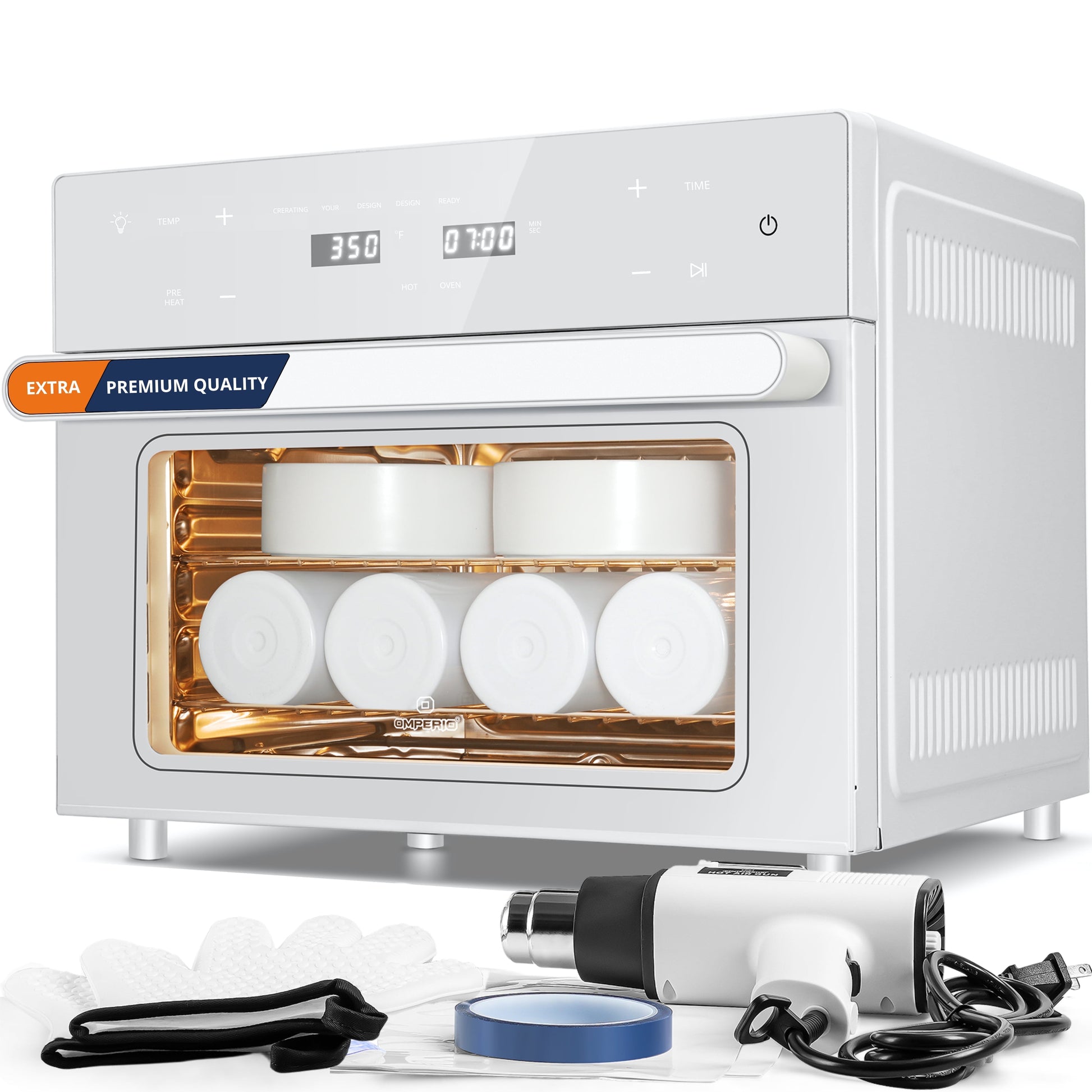 OMPERIO Sublimation Oven Machine for Tumblers, 32Qt 110V 1800W Convection Oven for Sublimation Blank Mugs Tumblers Bowls Glasses Bottles, 1 Heat Air Gun, 25 Shrink Wrap, 2 Heat Gloves, Heat Tape