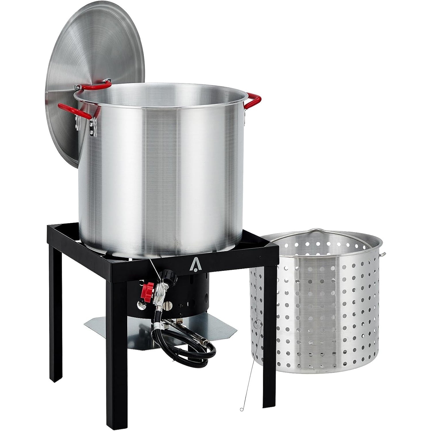 - Powerful Performance: Experience outstanding cooking with our seafood boil pot, featuring a powerful burner that delivers up to 110,000 BTU. This ensures efficient and even cooking, perfect for quick seafood boils. Whether it's a backyard barbecue or a large shrimp boil, the pot easily accommodates substantial quantities of seafood. Enjoy perfectly boiled crabs, shrimp, and vegetables, making your outdoor cooking memorable and hassle-free.