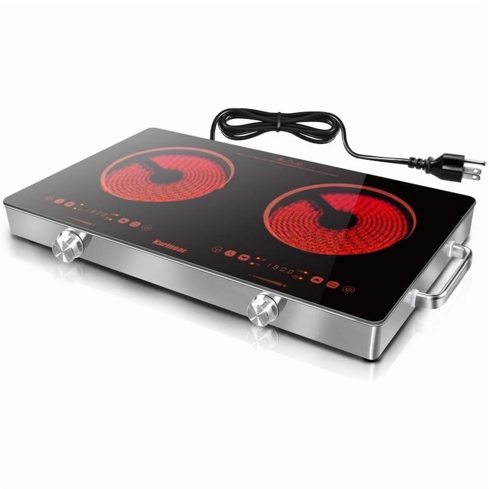 【Portable and Convenient Design】Our 24-inch 2 burners electric cooktop features ergonomic handles on both sides, making it easy to transport and perfect for any kitchen, RV, or outdoor setup. The stainless steel body adds a touch of modern elegance, while the non-slip feet ensure stability on any surface. There is no installation required for this 110v electric stove, just plug and cook. 【Safe and Smart Cooking Features】Safety is our top priority. This electric cooktop 2 burners include a child safety lock to prevent accidental operation, an overheat protection system, and a residual heat indicator that flashes "HOT" until the surface cools down. Additionally, you can set a timer up to 240 minutes, ensuring your meals are cooked to perfection without constant supervision. 【Knob & Sensor Touch Control】Featuring touch-sensitive control panels on each side, this 24" electric cooktop allows you to individually control the two burners. The countertop burner has two front-side rotary knobs, which let you fine-tune the power or temperature from 400°F to 1200°F or from P0 to P9. Adjusting the heat is as simple as turning a dial, making it user-friendly and highly precise. 【Versatile and Efficient Performance】With a total power output of 2000W, this dual burner cooktop can handle any cooking task. Each burner can reach up to 1600W. Compatible with a wide range of cookware, including glass, ceramic, iron, and stainless steel, this electric ceramic cooktop is more versatile than traditional induction cooktops and does not emit electromagnetic radiation, making it a safer choice for your kitchen. 【High-Quality, Easy-to-Clean Surface】The glass cooktop's surface is made from premium black glass that is high-temperature resistant, scratch-resistant, and incredibly easy to clean. This sleek design not only looks great but ensures that your portable cooktop remains in pristine condition with minimal effort.
