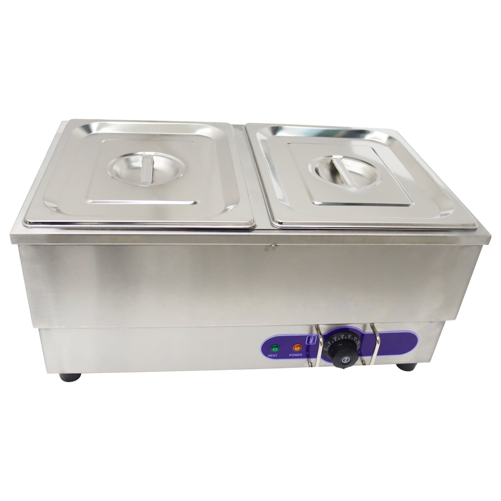PreAsion 2 Pot Hot Dog Steamer Stove Bun Warmer Canteen Buffet Steam Heater Table Stainless Steel