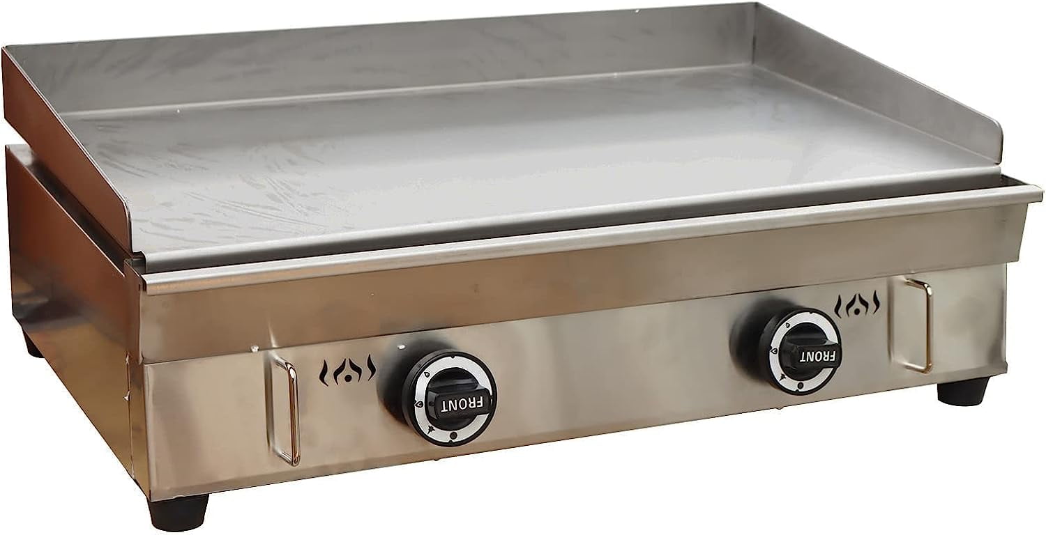 PreAsion Commercial LPG Gas Grill Griddle Countertop Flat Top Cooking Griddle Grill BBQ Teppanyaki Grill with Adjustable Temperature Control 2800Pa Stainless Steel