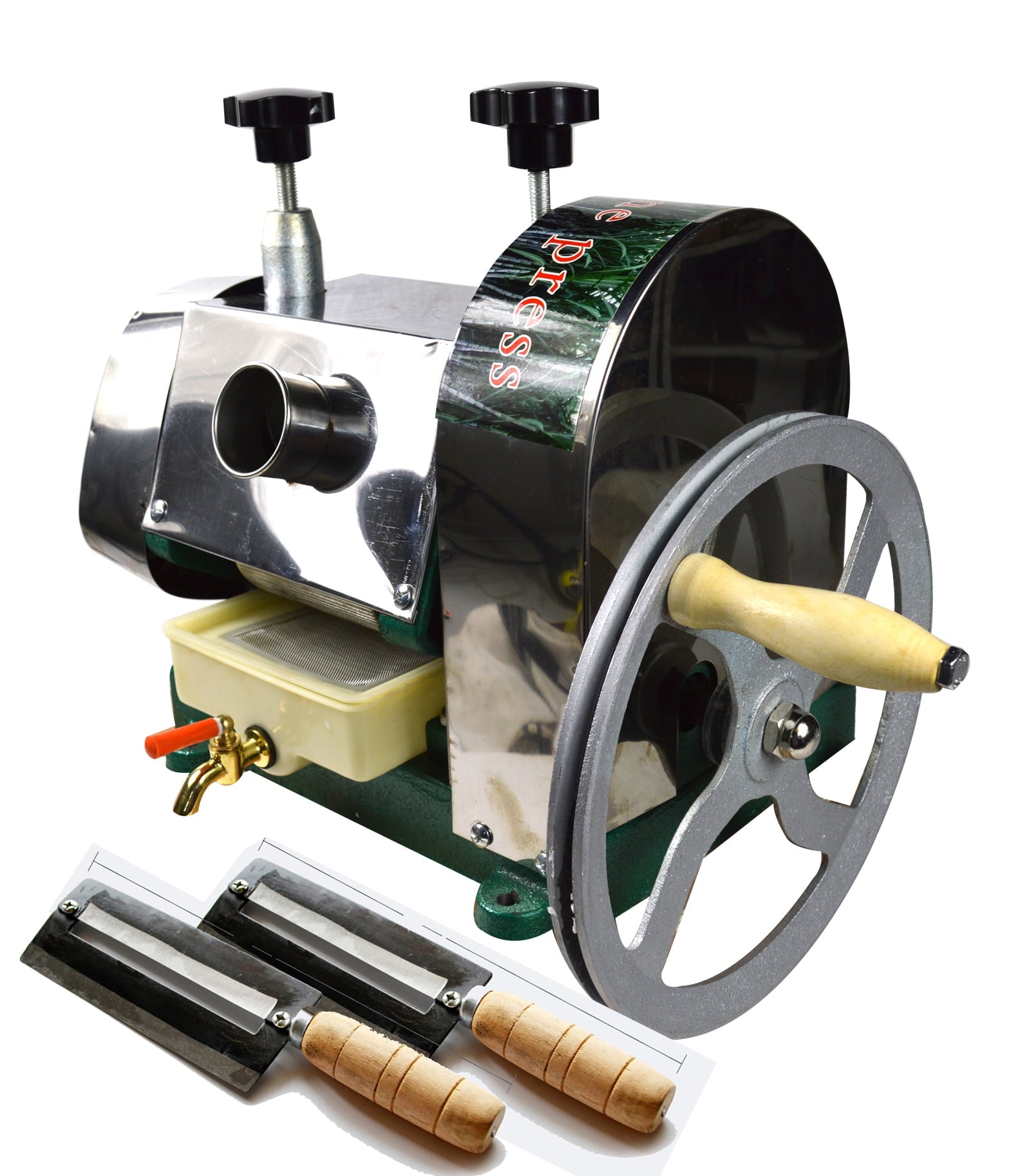 - This sugar cane juicer machine is made of 304 stainless steel; manually operated with a hand crank pulley that is geared for easy and effortless juicing.