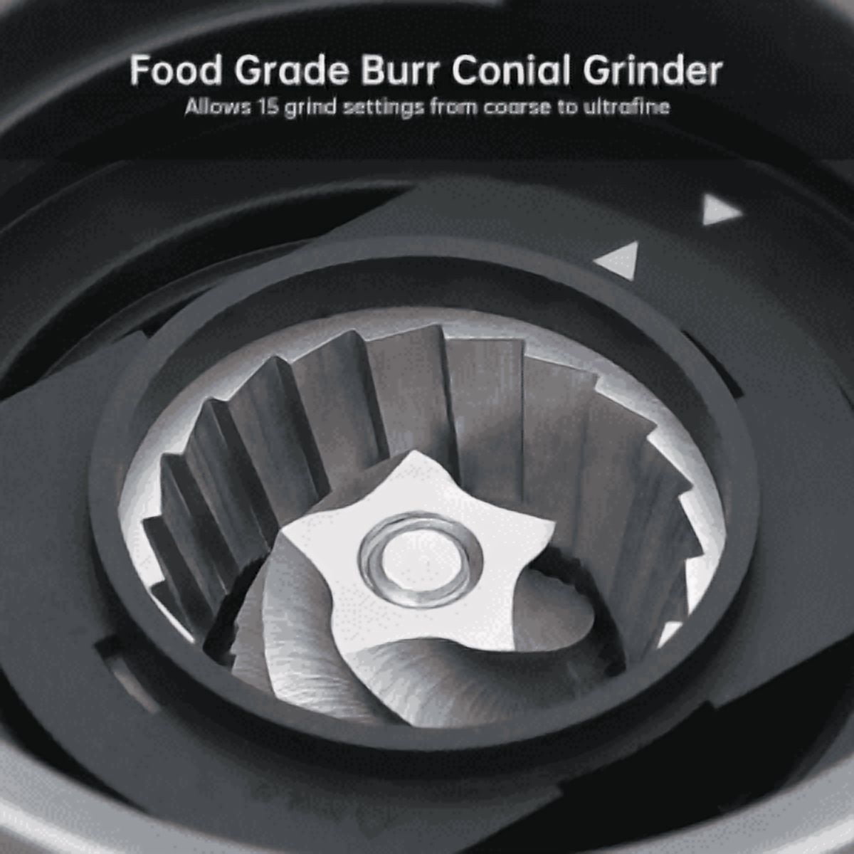 250g coffee bean hopper capacity, 15 adjustable grind settings