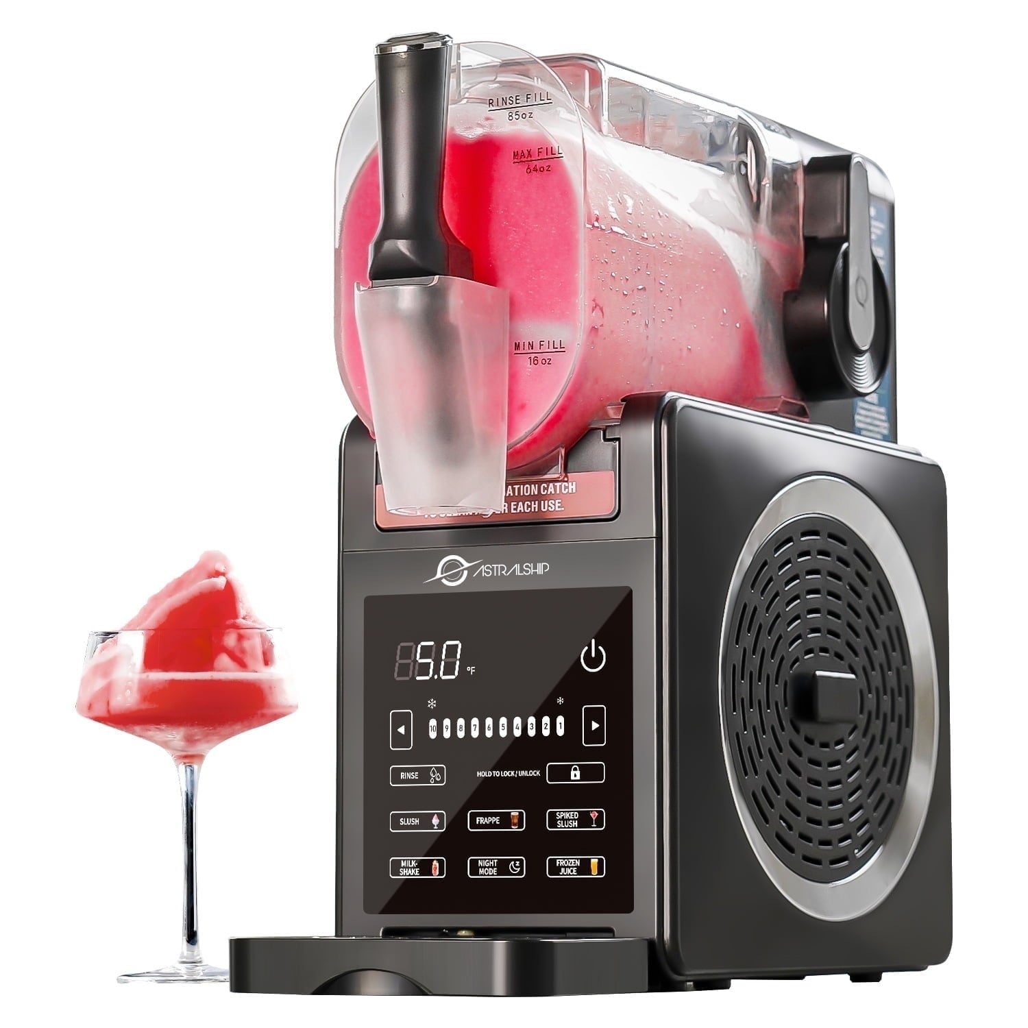 - 【1️⃣ Instant Frozen Drinks in 15–60 Minutes】Turn any beverage into a bar-quality frozen drink with this frozen drink machine and slushie machine for home. Featuring 6 preset modes—slush, spiked slush, frappé, milkshake, juice, and cold drink—it easily adapts to smoothies and frozen cocktails. The powerful, low-noise compressor delivers frozen drinks in just 15–60 minutes. Both temperature and thickness are fully adjustable, with a real-time temperature display and 10 texture levels to customize every drink to your perfect preference