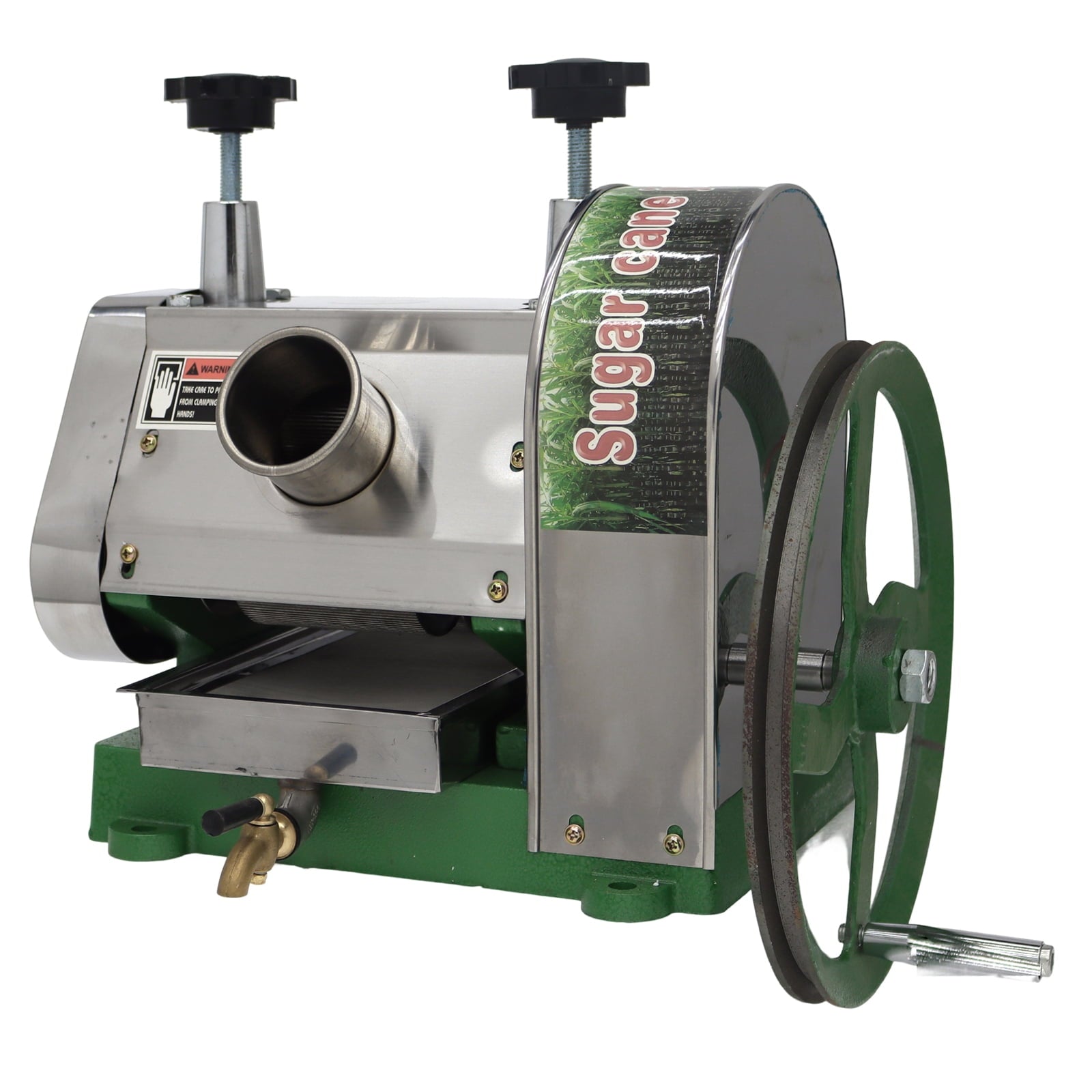 - The sugar cane press juicer does not require electricity and is easy to operate. Increase the diameter of the turntable, easier to use. Even if operated for a long time, hands will not feel tired. This manual sugarcane juicer is suitable for 2-inch thick sugarcane. With three stainless steel rollers, it can press sugarcane more thoroughly. If the machine appears high load,reverse swing directly.