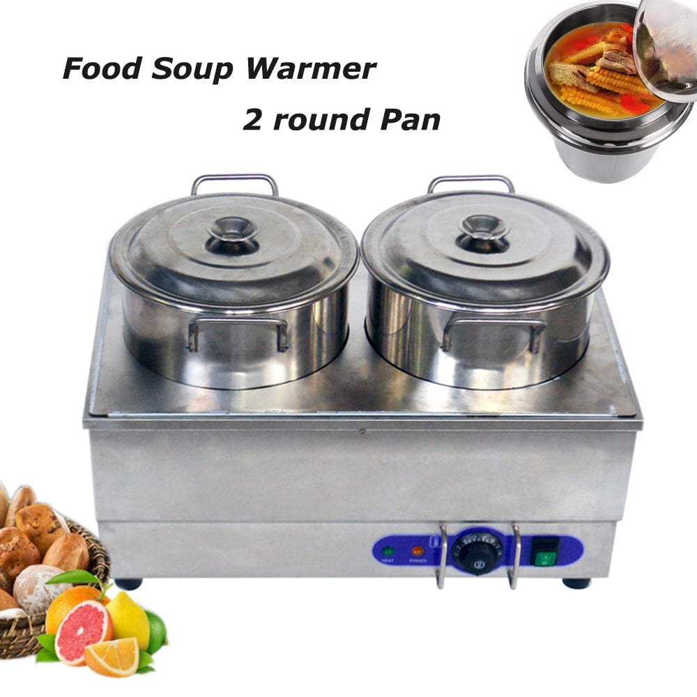 TECHTONGDA Buffet Soup Warmer Stainless Steel Bain Marie Buffet Countertop 2 Round Pan Electric Steam Heater
