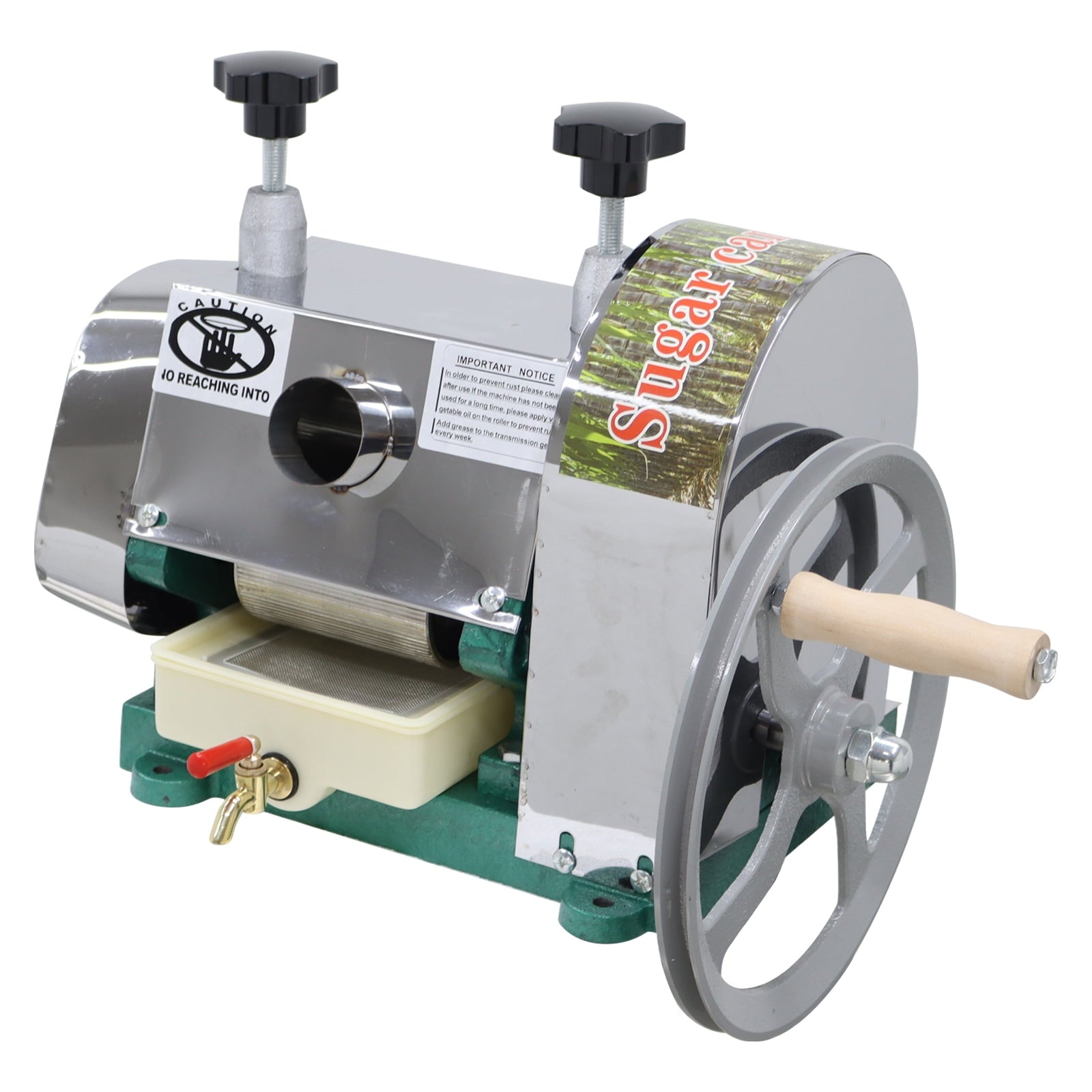 - This sugar cane juicer machine is made of 304 stainless steel; manually operated with a hand crank pulley that is geared for easy and effortless juicing.