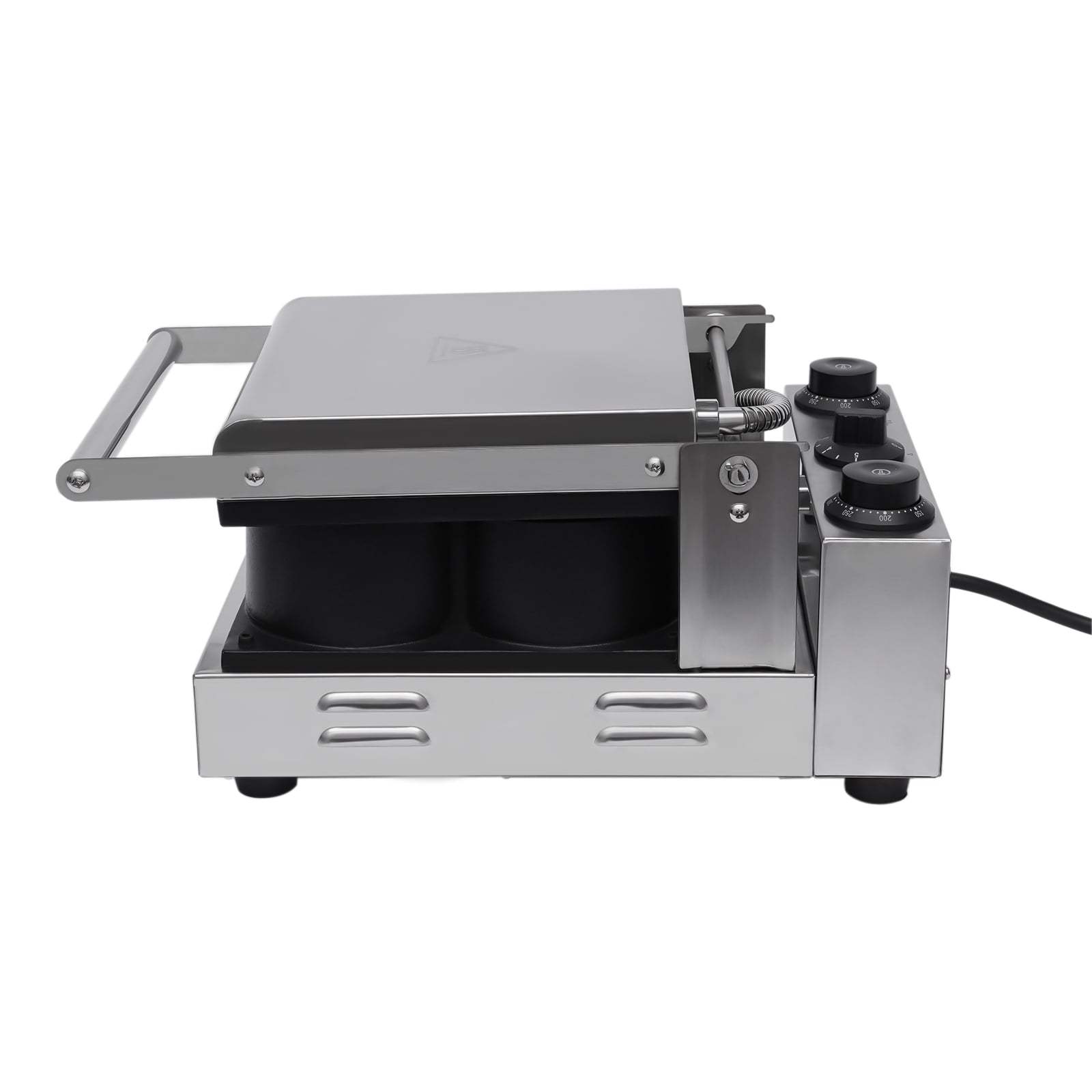 Bowl-shaped Waffles: The mold of this waffle maker is specially designed so that the waffles are made in the shape of a bowl. The bowl-shaped waffle is both a food and a container, which can add a new charm to your dessert store.