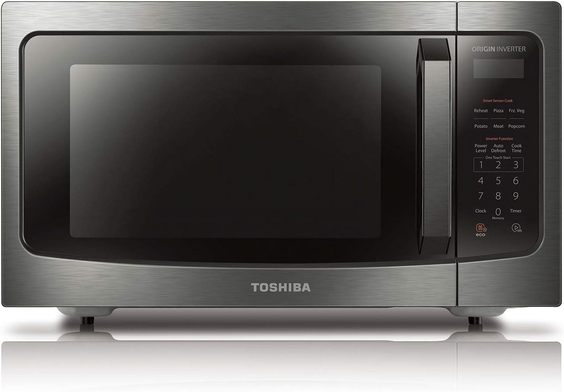 Toshiba 1.6 cu ft Countertop Microwave Oven With Inverter Technology and Smart Sensor, 1250W, Black Stainless Steel, MLEM45PIT BS
