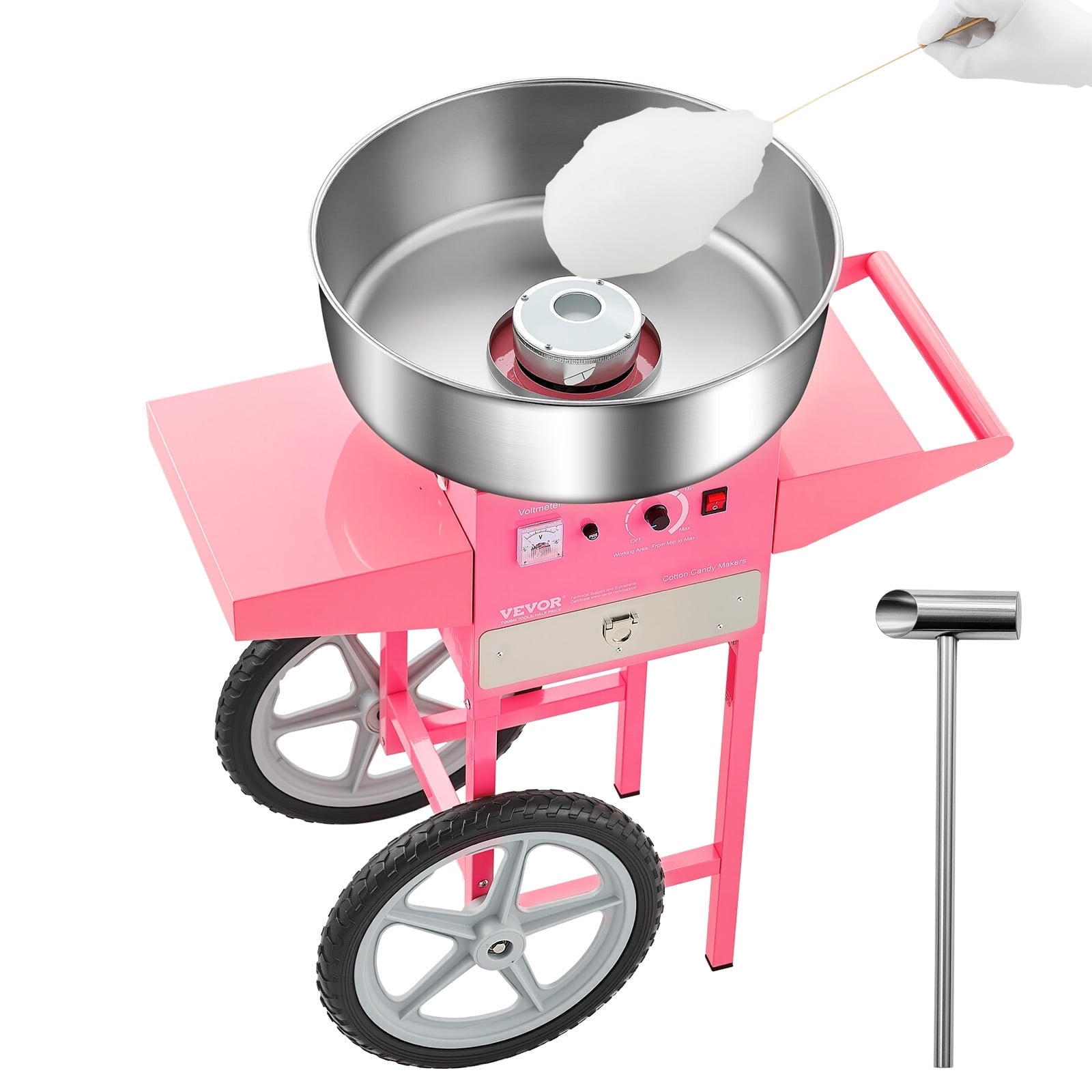 VEVOR Electric Cotton Candy Machine with Cart, 1000W Commercial Candy Floss Maker with 20.5 in Stainless Steel Bowl, Sugar Scoop, and Drawer, Easy to Use, for Home, Kids Birthday, Family Party, Pink