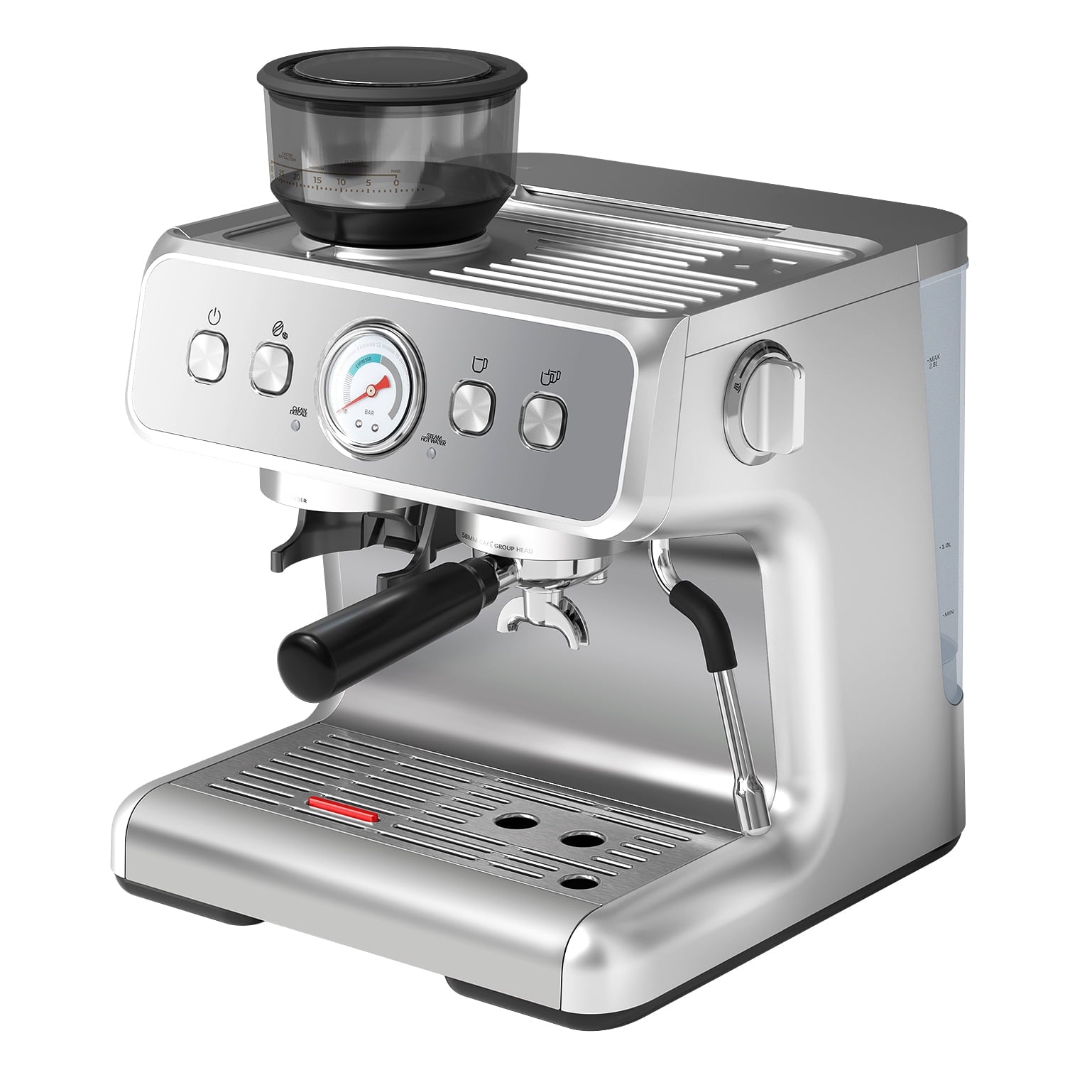 The WAA 15 BAR Semi-Automatic Espresso Machine is equipped with 30 precision grinding systems and holds up to 250g of coffee beans, with adjustable or fixed amounts of ground coffee.The WAA coffee maker can be adjusted for single or double cup capacity as needed, the visual manometer shows the water temperature in real time, and the descaling indicator prompts you for cleaning and maintenance.PLD intelligent temperature control, the temperature is more accurate and stable, and the temperature inside the funnel can be controlled within 2°C. 58mm brewing system can make better coffee results. Hot water function is convenient for you to clean and warm the cup.