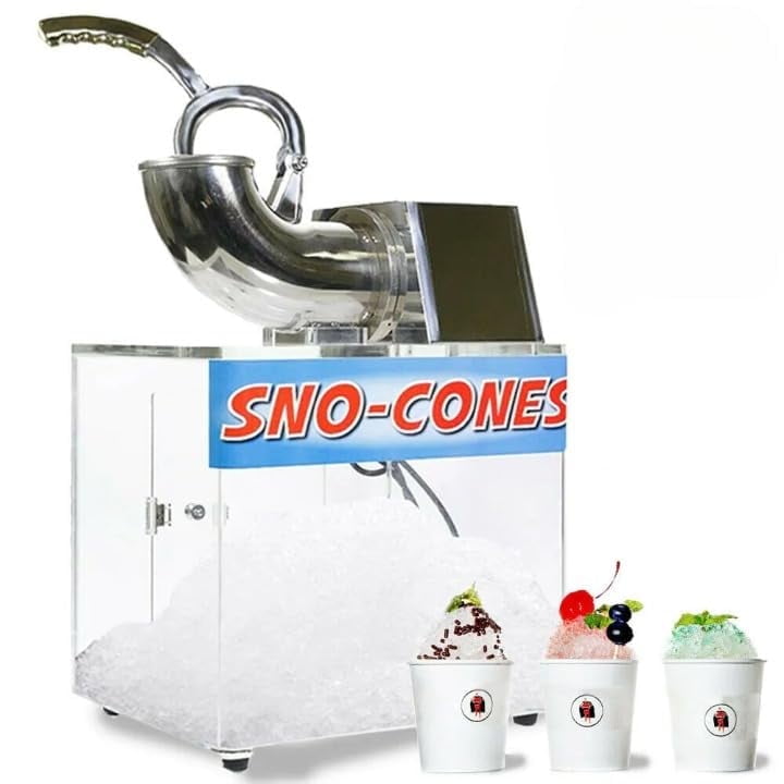 WYZworks 10 Gallon Stainless Steel 440 lbs/hr Electric Ice Shaver Machine with Dual Blades 250W Ice Crusher Snow Cone Maker Machines w Acrylic Box for Home, Restaurants, Bars, Party