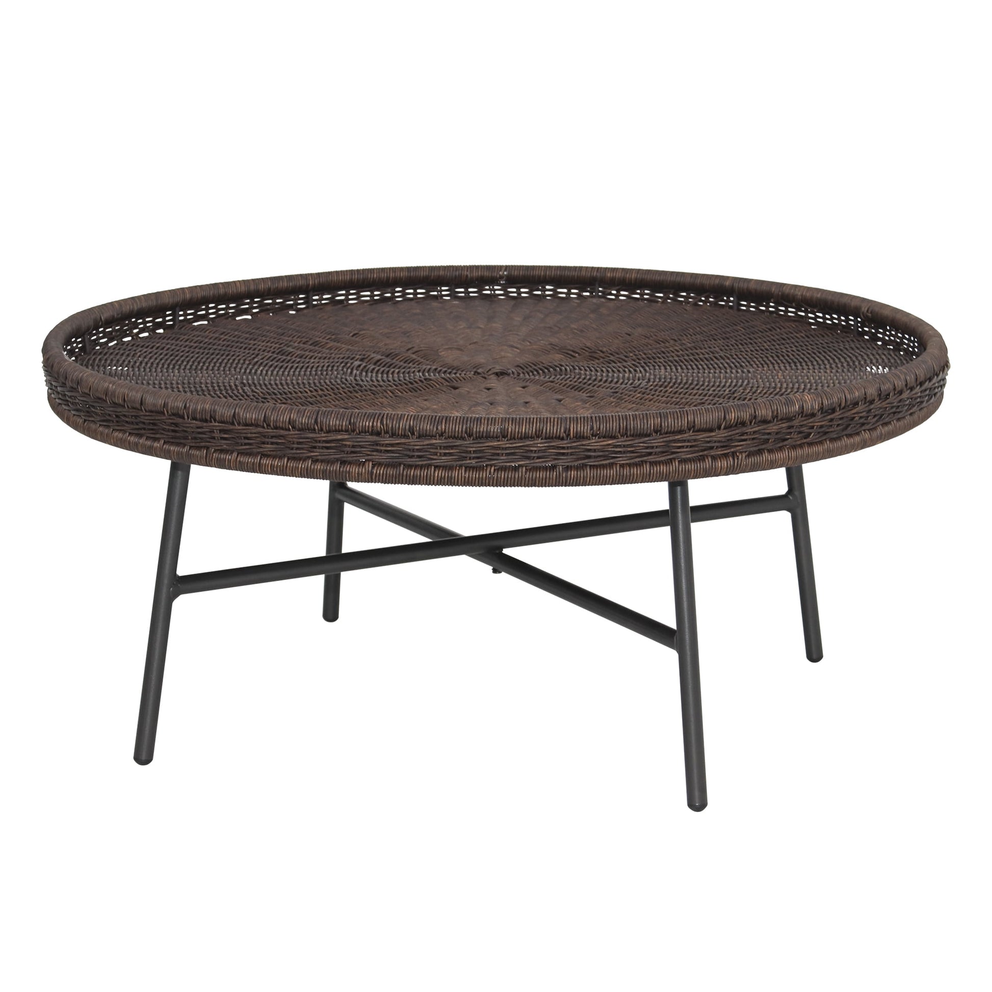 Give your place the perfect companion that is not only incredibly stylish but also offers outstanding function. Featuring a long-lasting woven wicker finish in round tray top with powder coated metal legs to support looks in perfect size for small space, light weighted and easy to move to anywhere you like to sit with your family or friends for a afternoon tea. There are 2-color options for this Abble round coffee table: Espresso(dark brown) color with matte black metal legs and Natural color with white metal legs ,which are easy to match indoor or outdoor arrangement. Please note, to prolong the lifespan of your product, please cover or store during extreme weather.