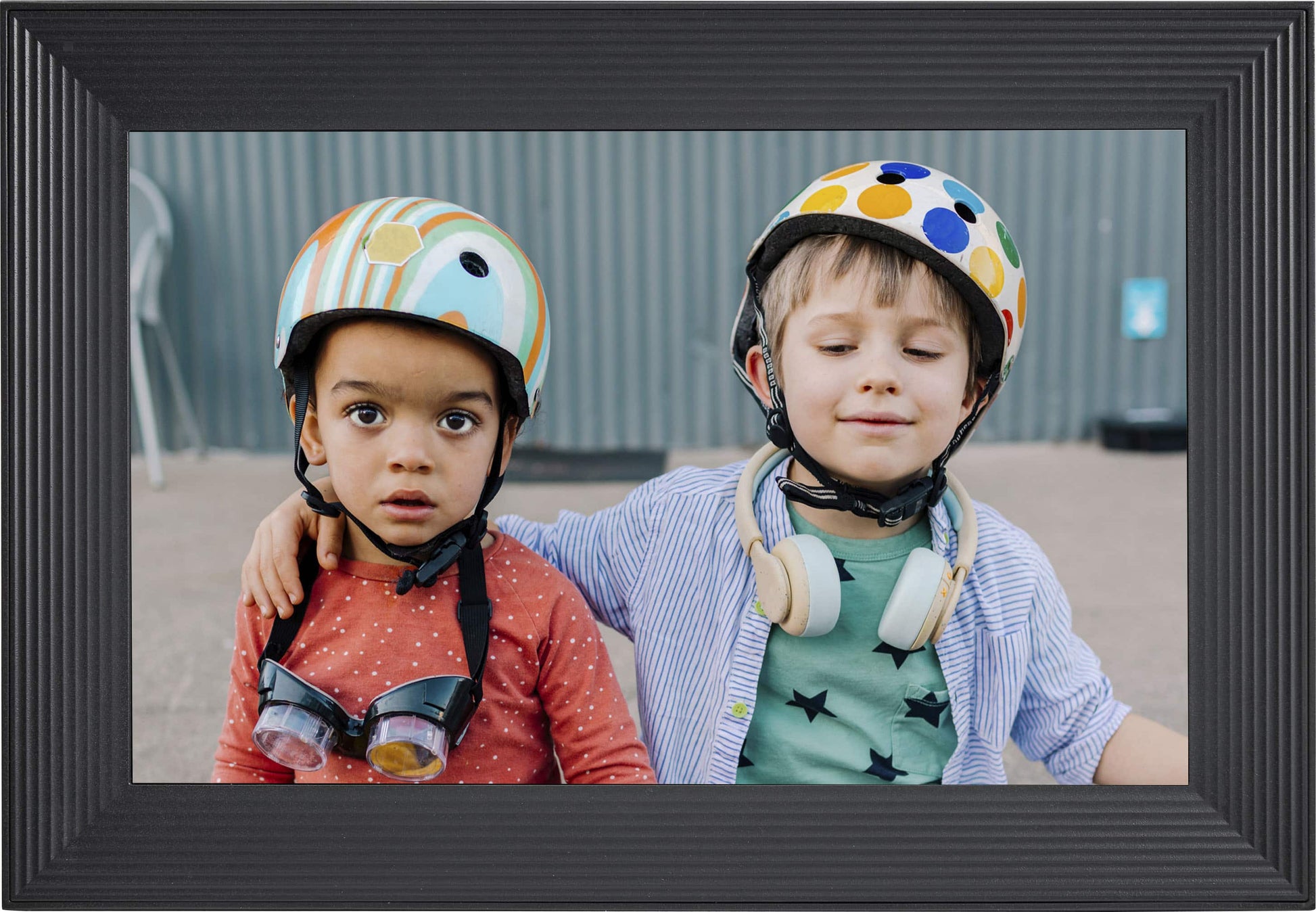 A WiFi-connected photo frame that makes it easy to instantly display and share all your favorite photos, videos, and more. A freestanding landscape frame, Carver features a color-calibrated digital display and free unlimited photo storage. Add photos from any device and invite friends and family to share theirs too.