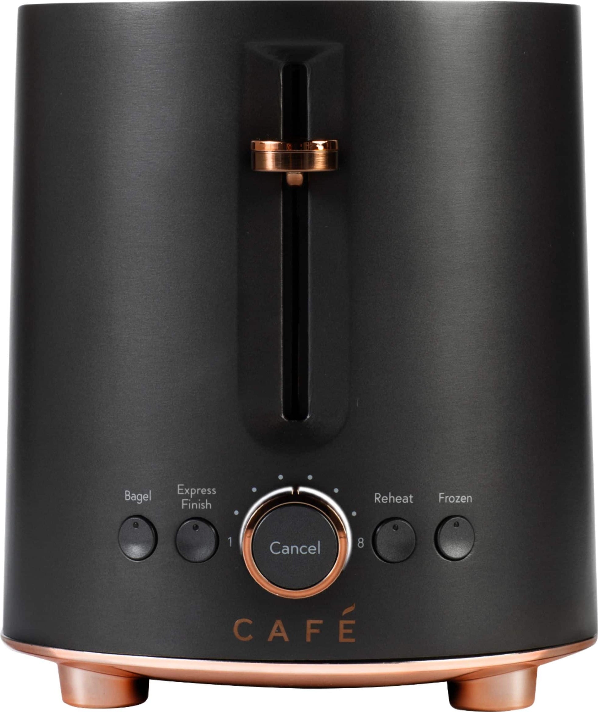 Nothing about your personal style is standard. So why should your appliances be? Created for those who want to reflect their true style in every room of their home, Café is distinct by design. Backed by showstopping features, every Café appliance gives you the form and the function you've been craving. Now that exceptional style is coming to your countertops thanks to elegant and efficient toasters, which feature the signature Café copper accents that truly elevate your experience. Embrace a toaster that you can be proud to present on your counters that also boasts four pre-set functions that allow you to customize your toast to your preferences. The innovative Express Finish setting creates delectable toast in about a minute, while additional operating functions such as Frozen, Bagel, Reheat and Cancel, all help you curate your ideal toasting experience. Even clean-up is a breeze thanks to the copper-plated catch tray which collects crumbs as they fall to the bottom of the toaster and prevents them from scattering across the counter.
